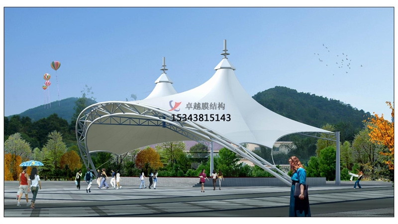 二、舞臺膜結(jié)構(gòu)造型獨特:所用膜材是柔性材料、整體造型更容易實現(xiàn)獨特性,我們可以為客戶做多個造型方案由客戶選擇,定制化的流程可以保證舞臺自由空間曲面多變化。