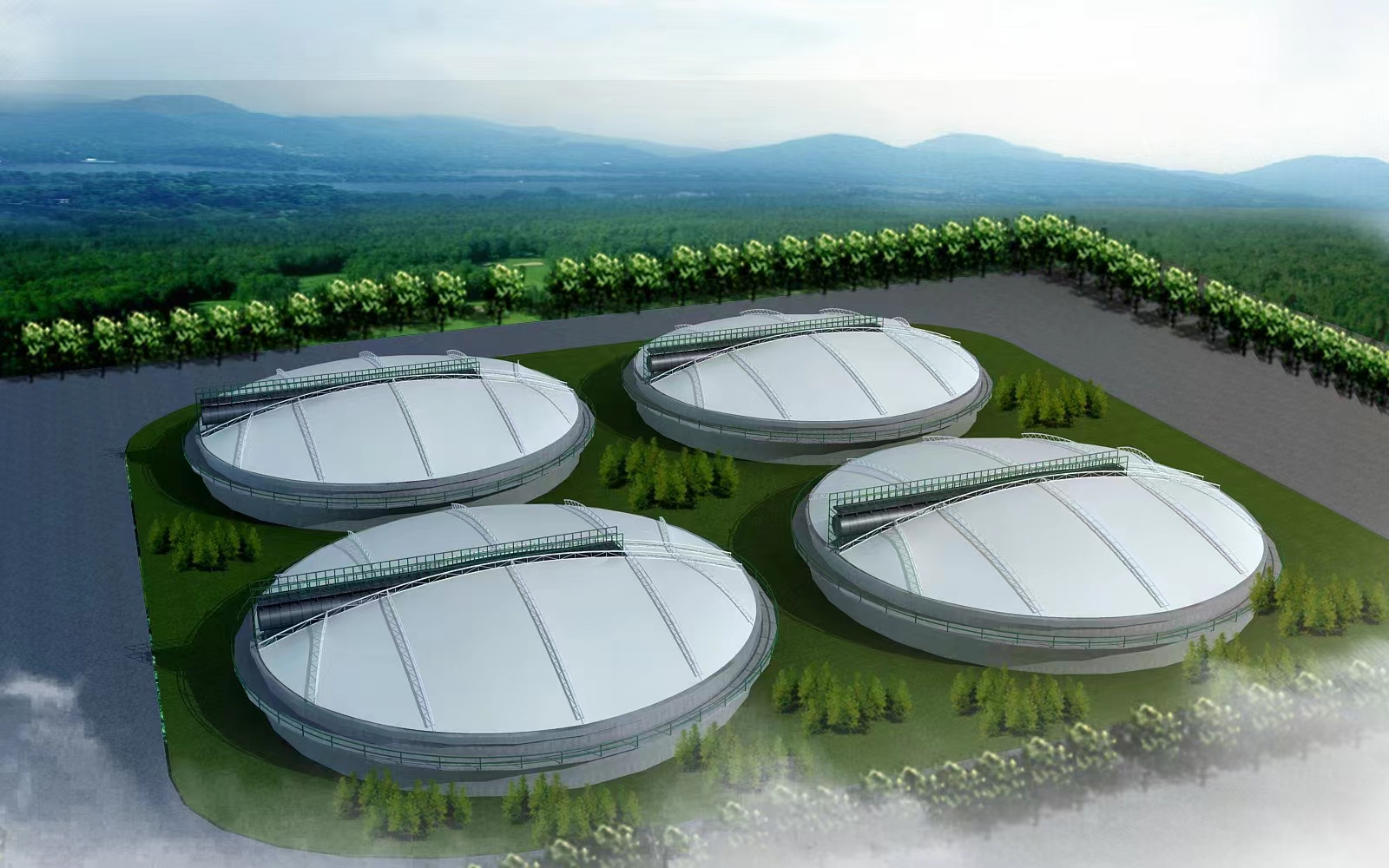 膜結(jié)構(gòu)污水池反吊膜的優(yōu)勢污水池反吊膜搭配膜結(jié)構(gòu)建筑顯得十分出類撥萃,展現(xiàn)出不一樣的個性與魅力。污水池反吊膜作為污水池密封收集工程中最常見的污水池加蓋方式,它究竟有何優(yōu)勢,能在短短10年間,迅速的搶占污水池加蓋市場。