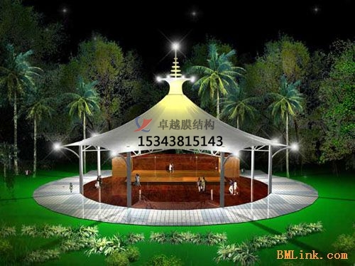 膜結(jié)構(gòu)可以從根本上克服大跨度建筑中傳統(tǒng)建筑的技術(shù)難題,創(chuàng)造開放、無遮擋的空間,提供良好的空間尺度和景觀條件。特別適用于大型城市廣場、大型體育場館等大型景觀設(shè)計中的戶外應用,跨度大,造型新穎。