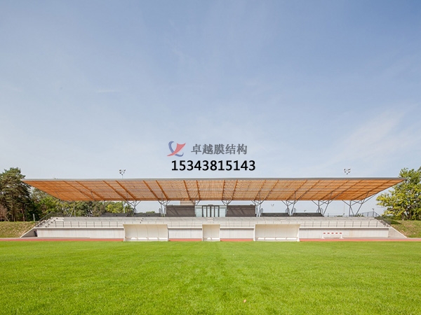 PTFE膜結(jié)構(gòu)看臺(tái)的結(jié)構(gòu)優(yōu)勢(shì):PTFE膜結(jié)構(gòu)看臺(tái)的優(yōu)勢(shì)很多。其中結(jié)構(gòu)優(yōu)勢(shì)主要有造型美觀獨(dú)特、大跨度覆蓋和良好的受力性能。PTFE膜結(jié)構(gòu)可以創(chuàng)造出傳統(tǒng)建筑體系無(wú)法實(shí)現(xiàn)的設(shè)計(jì)方案,如各種曲線、弧線、折線等多樣形狀,為體育場(chǎng)館增添獨(dú)特的建筑美感,使其成為城市的標(biāo)志性建筑之一。由于PTFE膜材輕質(zhì)且強(qiáng)度高,配合合理的支撐結(jié)構(gòu),可實(shí)現(xiàn)較大跨度的空間覆蓋,減少中間支撐柱的設(shè)置,為觀眾提供更開(kāi)闊、無(wú)遮擋的視野。膜結(jié)構(gòu)通過(guò)合理的預(yù)應(yīng)力分布,能夠均勻地承受風(fēng)荷載、雪荷載等各種外荷載,在受力過(guò)程中通過(guò)膜面的變形來(lái)適應(yīng)荷載變化,使結(jié)構(gòu)保持穩(wěn)定。