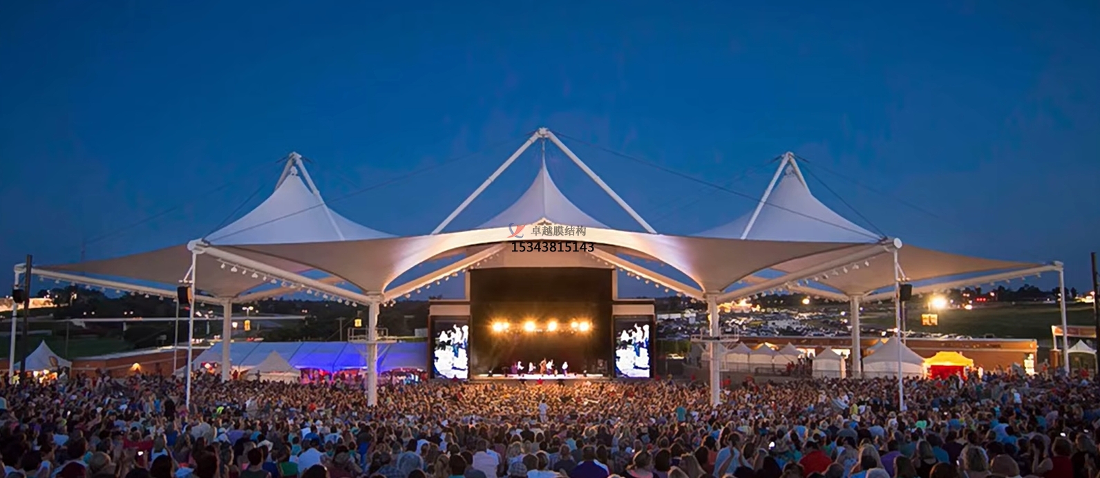 舞臺膜結(jié)構(gòu)遮陽棚廣泛應(yīng)用于各種戶外演出和活動中,如音樂會、戲劇表演、舞蹈演出等。此外,它還可以作為臨時展覽、會議等活動的遮陽設(shè)施。隨著戶外活動和露天演出的增多,舞臺膜結(jié)構(gòu)遮陽棚的實用性也越發(fā)凸顯。