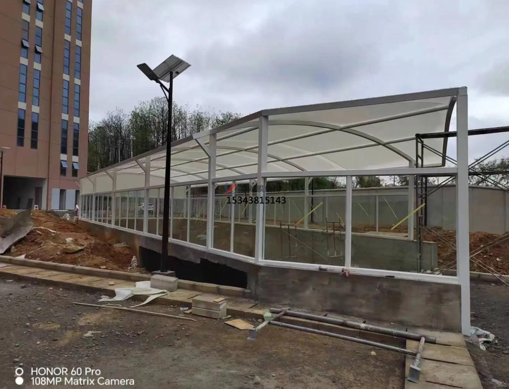 車庫入口膜結(jié)構(gòu)雨棚的設(shè)計(jì)過程中,通過合理使用鋁合金材料,可以使得整個結(jié)構(gòu)更加牢固可靠。